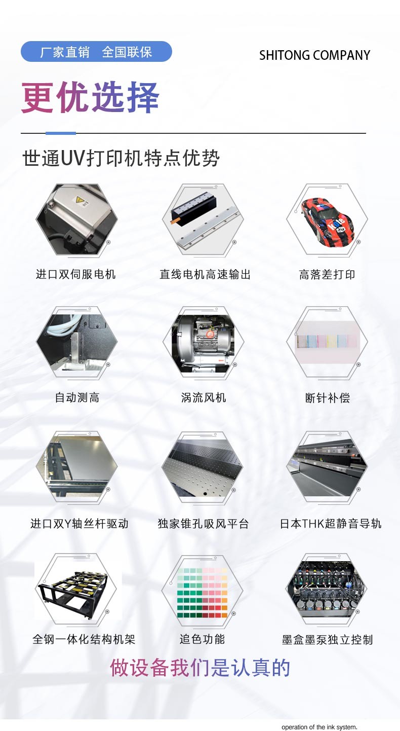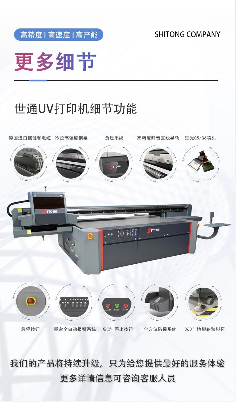 世通智能UV平板打印機,自主研發(fā)生產(chǎn),進全鋼一體機架,打印速度快,精準高效,可打印高落差物品,無須制版,電腦出圖一體印刷成形,方便快捷,廣泛應用于皮革箱包、手機殼、廣告標識標牌、各類建材、瓷磚背景墻、木板藝術(shù)畫、玻璃材質(zhì)、金屬材質(zhì)選等平面材料都可以印刷,東莞世通智能是UV平板打印機專業(yè)制造廠家,價格低,速度快精度高,免費打樣,售后上門維修服務,免費安裝調(diào)試,歡迎來電咨詢:13590146361張小姐