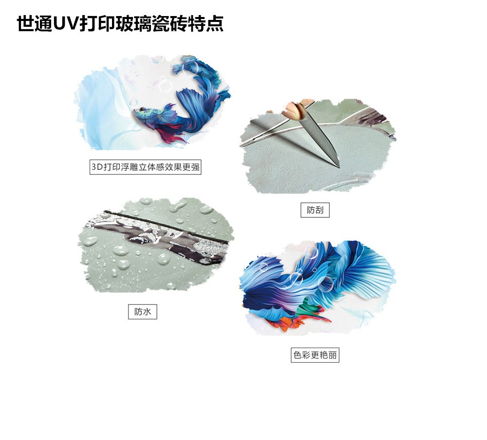 世通uv打印機在裝飾行業的應用有:背景墻uv打印機、玻璃移門uv打印機、瓷磚uv打印機、地毯uv打印機、護墻板uv打印機、藝術玻璃uv打印機、裝飾畫uv打印機、隔斷uv打印機、天花板uv打印機、柜門uv打印機、木板uv打印機、有機玻璃板uv打印機、家具uv打印機等。摒棄傳統單一,運用個性構思、先進的打印工藝,滿足對藝術裝飾的所有渴望。