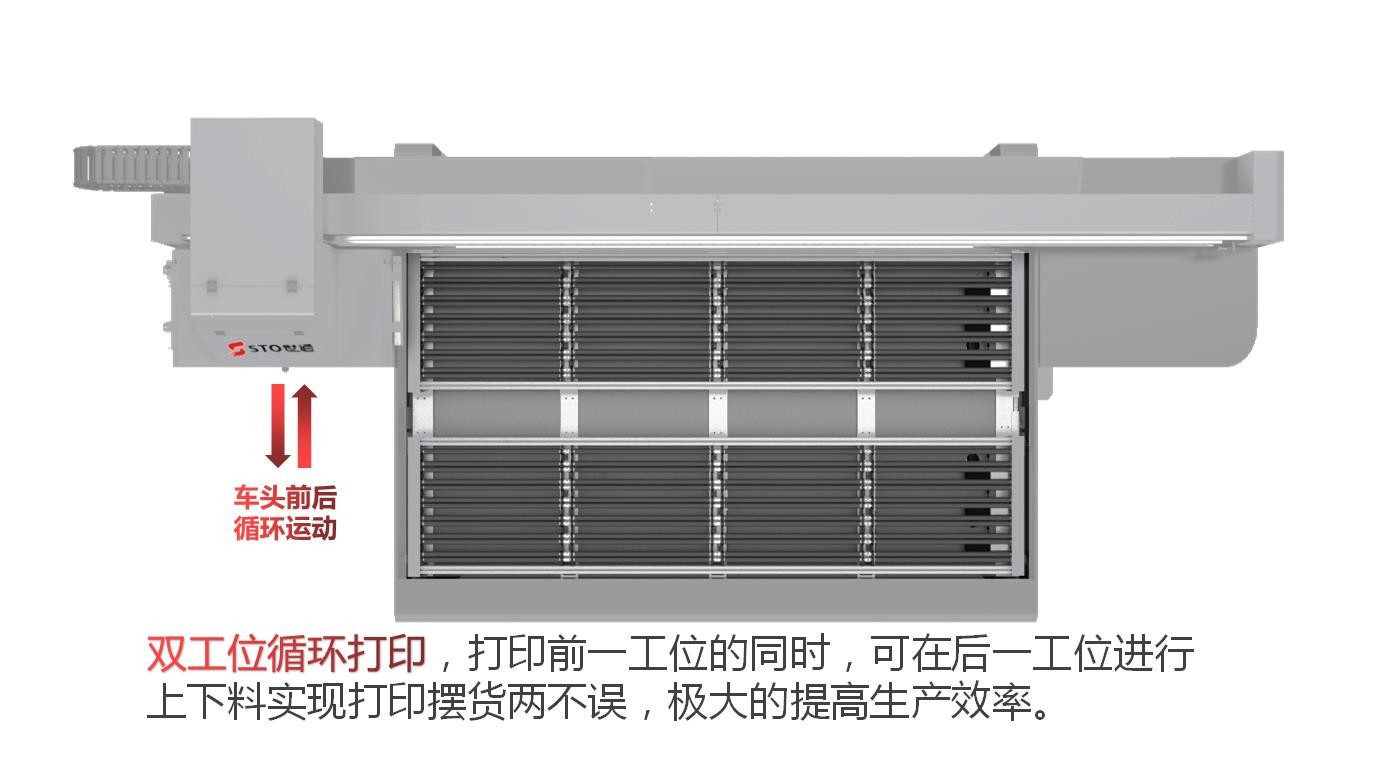 全球首創四排雙工位打印平臺,四排產品擺放區域同時進行打印。